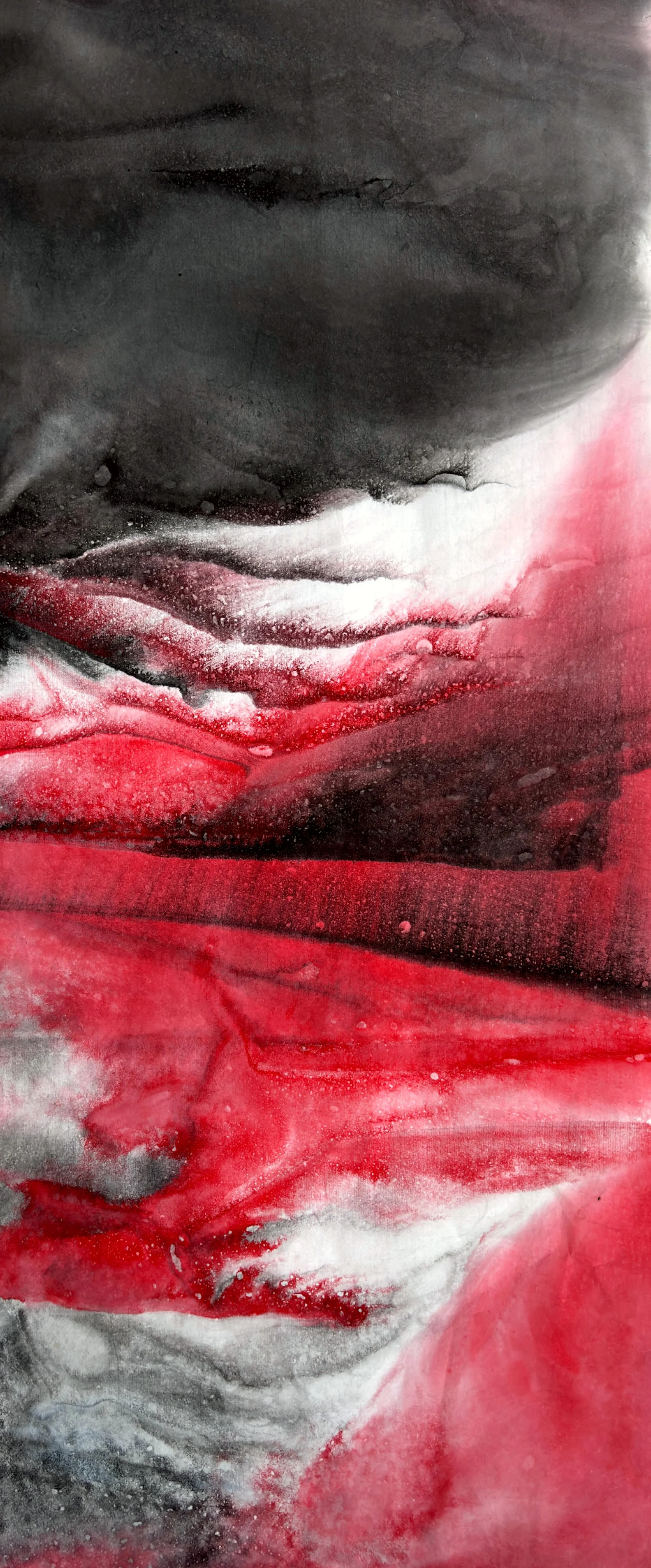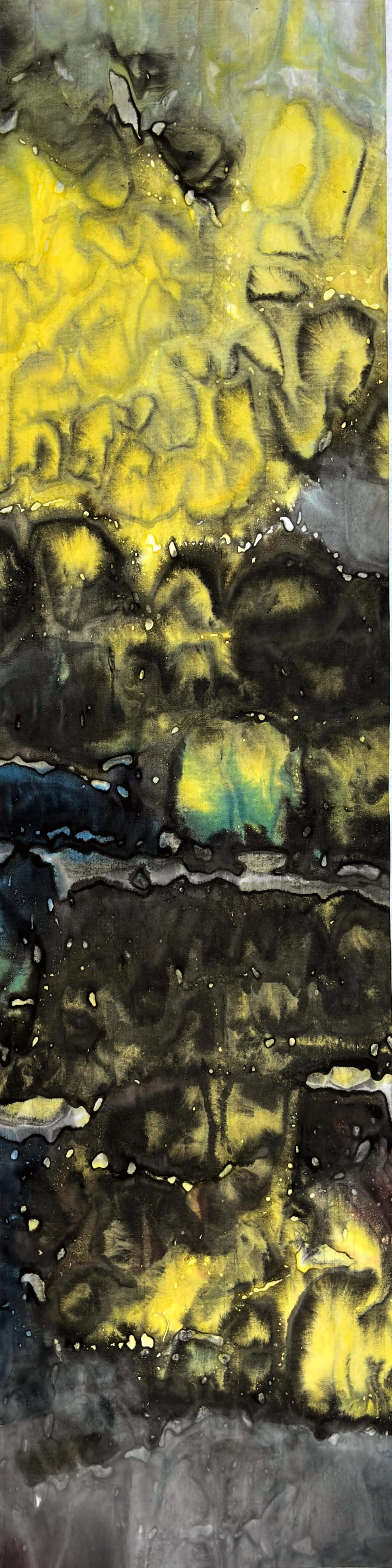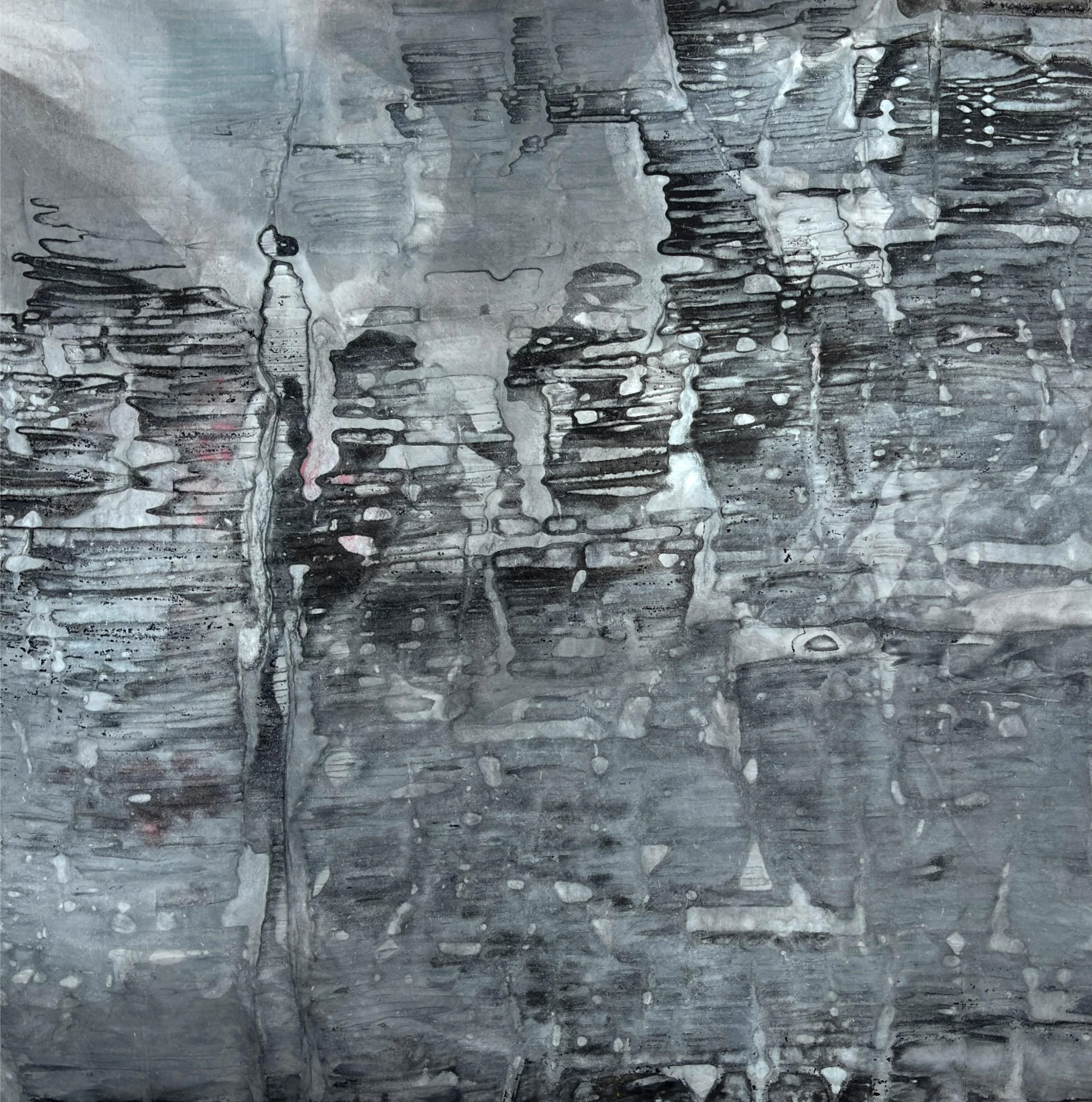 *Tension Experiments · Illusory Forms* (2024) revisits the ink system of Chinese painting, using ink and xuan paper as its central medium. The works embody a paradox of viewing: from a distance, they seem to depict landscapes, as if mountains and waters emerge; yet upon close inspection, the forms dissolve, leaving only washes of ink, textures, and the flow of tension. This oscillation between “presence and absence” becomes a meditation on the notion of representation. It not only exposes the mechanism of illusion within image perception, but also provokes questions about reality itself: how much of what we call the true “image” may also be illusion? And what is it that generates such illusions?