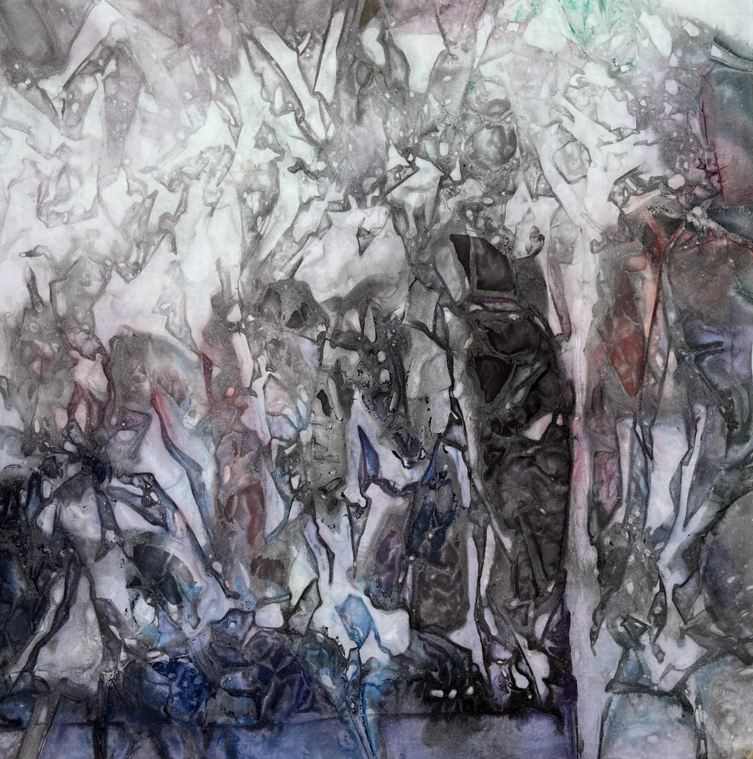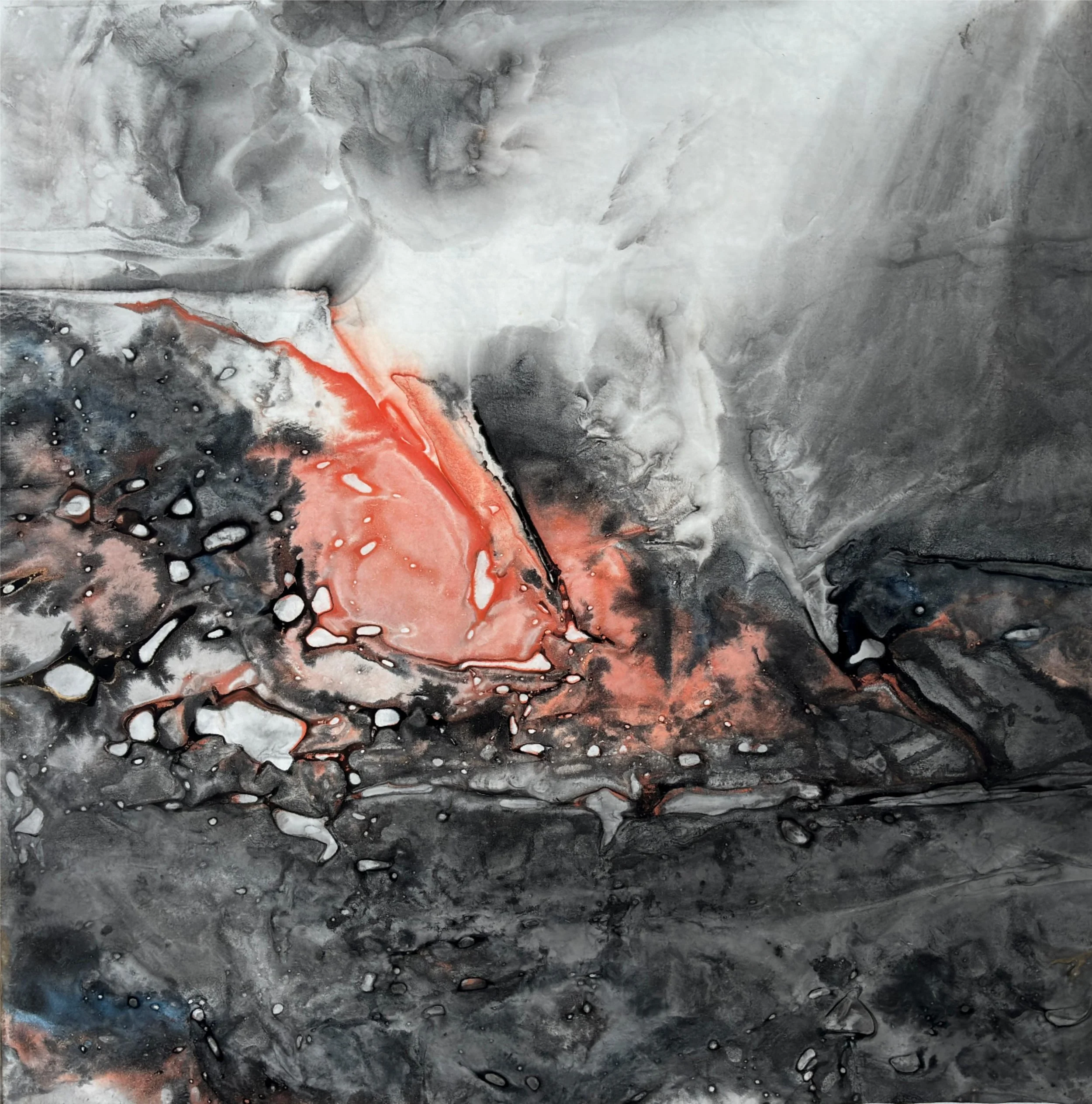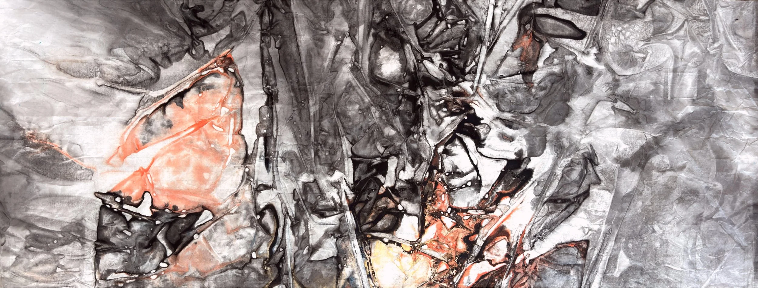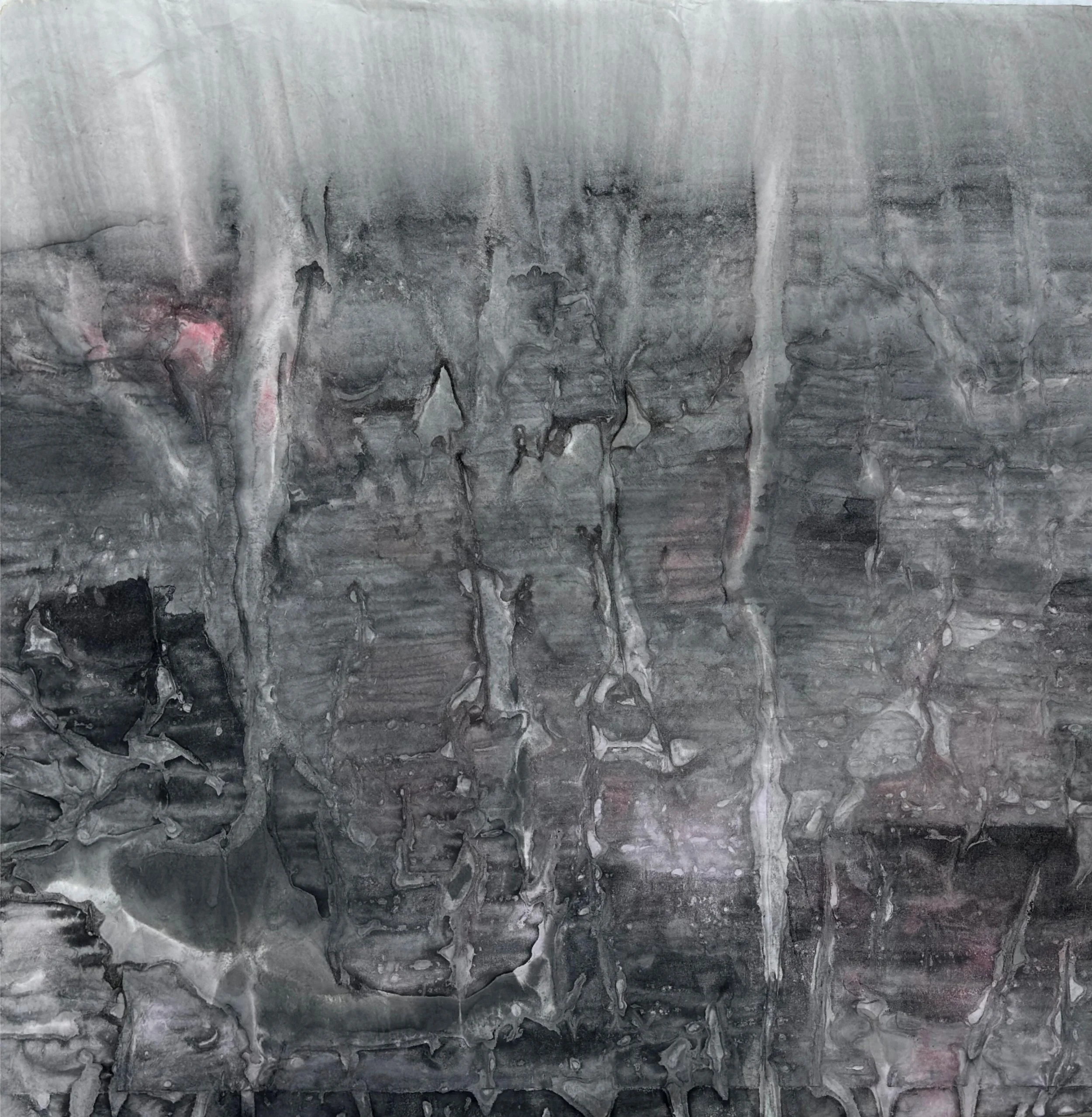 *Tension Experiments · Illusory Forms* (2024) revisits the ink system of Chinese painting, using ink and xuan paper as its central medium. The works embody a paradox of viewing: from a distance, they seem to depict landscapes, as if mountains and waters emerge; yet upon close inspection, the forms dissolve, leaving only washes of ink, textures, and the flow of tension. This oscillation between “presence and absence” becomes a meditation on the notion of representation. It not only exposes the mechanism of illusion within image perception, but also provokes questions about reality itself: how much of what we call the true “image” may also be illusion? And what is it that generates such illusions?